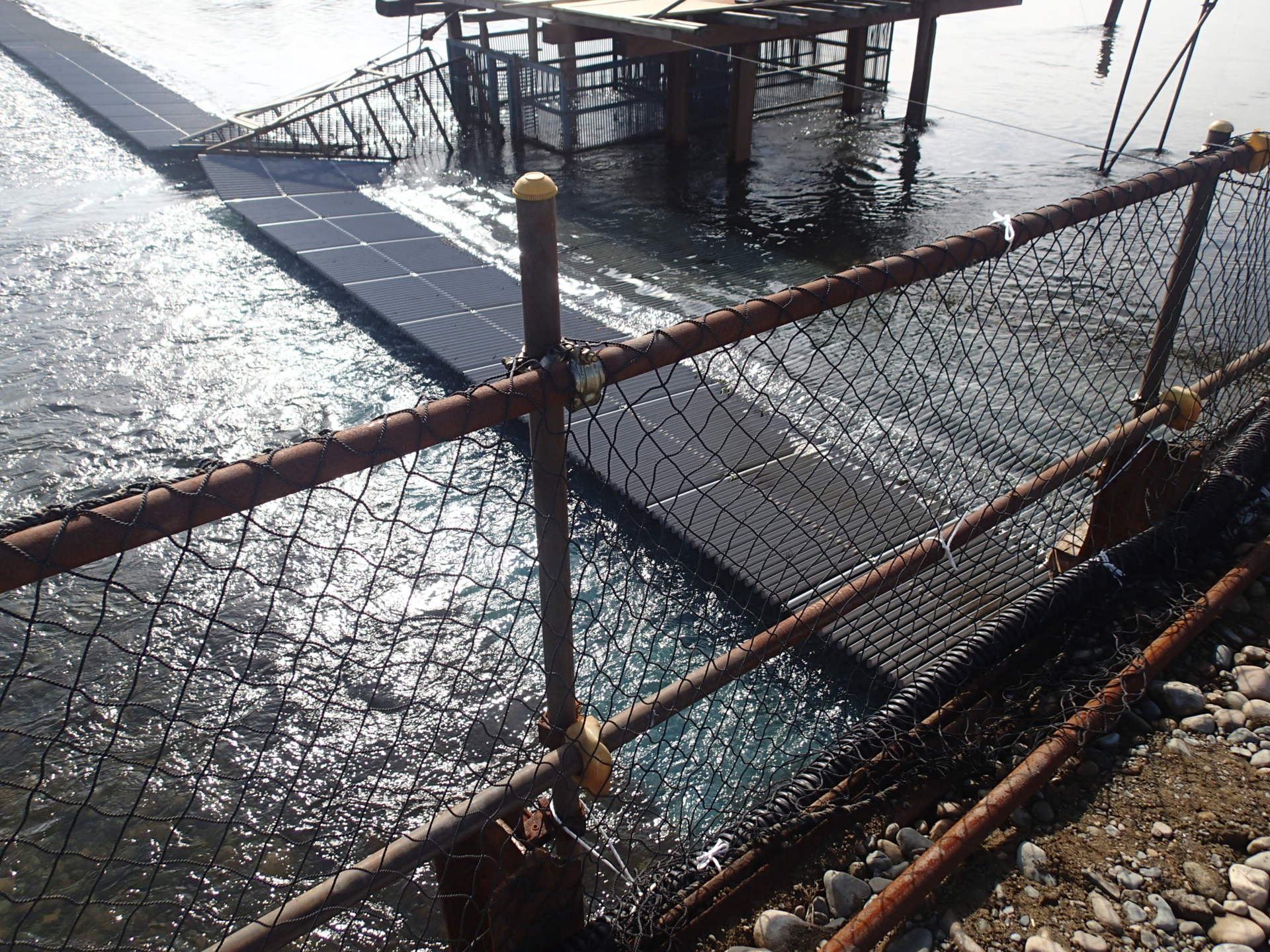射水市広上での天気は晴れです。 肌寒い季節になってきました。温度変動が激しい今日この頃。 体調管理には気を付けたいですね。 皆さんはどうお過ごしでしょうか。 本日は晴天にも恵まれ、庄川の鮭ヤナにて鮭の初水揚げが行われました。 ![]() ヤナの様子 ![]() 簡単にヤナについて説明します。 遡上した鮭は設置されたヤナで遡上を遮り、捕獲籠(赤・丸枠)に入ります。 捕獲籠に集まった鮭をクレーンにて網を用いて吊り上げ、鮭を引き上げます(赤・矢印) 勾配のかかった配管を通って陸へ水揚げされます。 ![]() 水揚げされた庄川の鮭 初日、遡上してきた鮭は少な目ですが、これから庄川に多くの鮭が遡上してくれる事を期待したいですね。 来月の土日・祝日にはサケのつかみ捕りが楽しめる庄川鮭まつりが開催されます。 是非、足を運んでみて下さい。 |